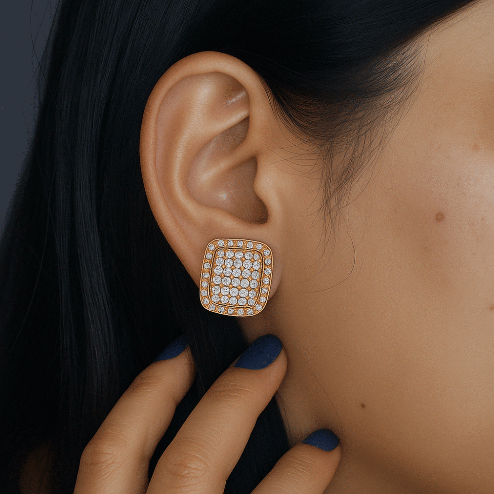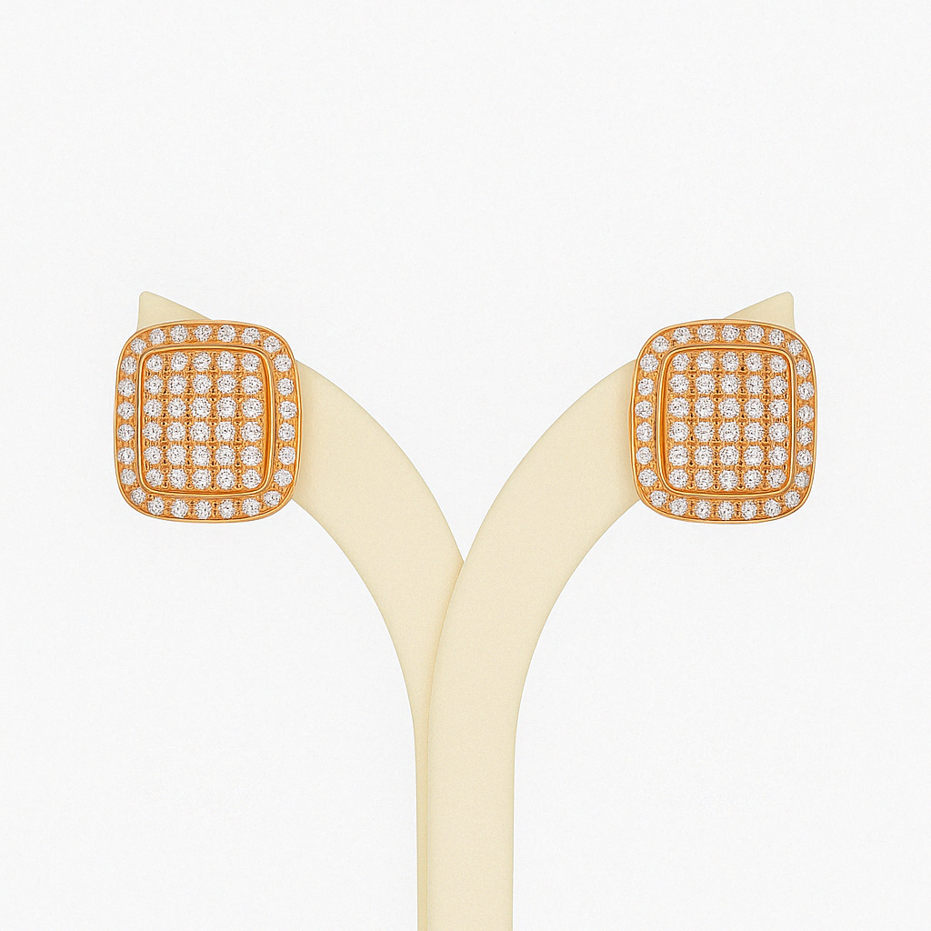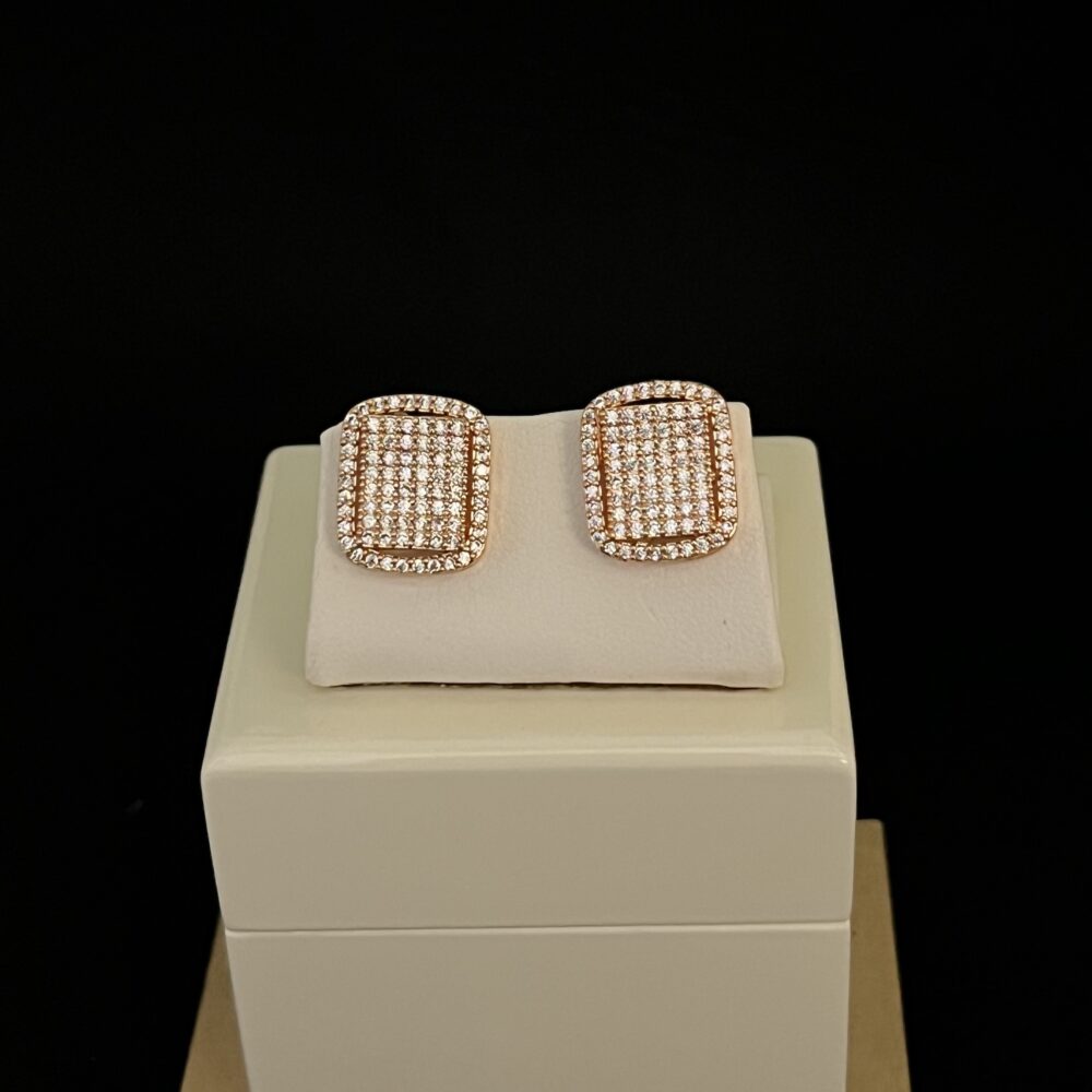 Luxury Cushion Shape AAA Cubic Zircon with Micro Pave Setting Stud Earrings in Gold Plated Alloy