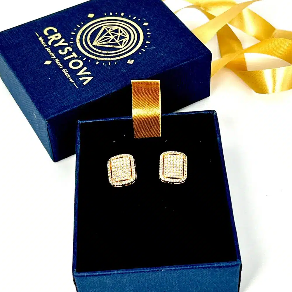 Luxury Cushion Shape AAA Cubic Zircon with Micro Pave Setting Stud Earrings in Gold Plated Alloy